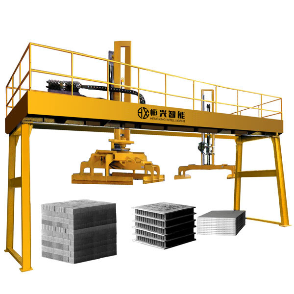 三興龍門式磚板分離機(jī)可將不同型號(hào)磚機(jī)生產(chǎn)的不同規(guī)格的砌塊進(jìn)行磚板分離碼垛,碼好后用叉車整垛運(yùn)到堆場(chǎng)養(yǎng)護(hù),也可配合叉車抱夾實(shí)現(xiàn)無(wú)托盤碼垛并可直接抱磚裝車,大大節(jié)省了人工成本。